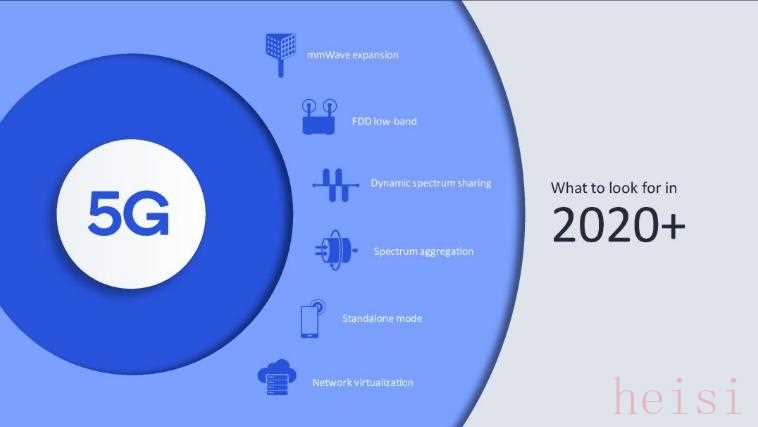 高通之前的發(fā)布會(huì),也使用了同樣的可視化手法,其中中間的“5G”部分使用了白色填充,以使其更加清晰: