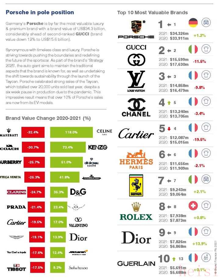 最近,國際權(quán)威機(jī)構(gòu)Brand Finance發(fā)布了,2021年奢侈和高端品牌排行榜。