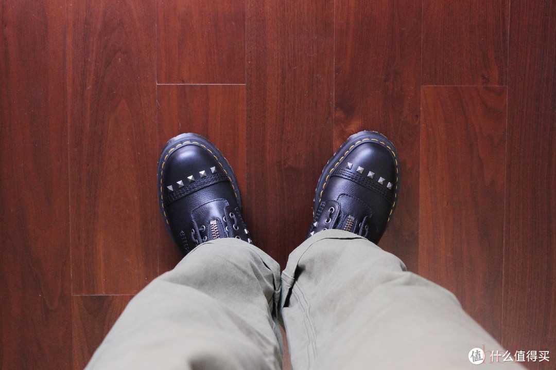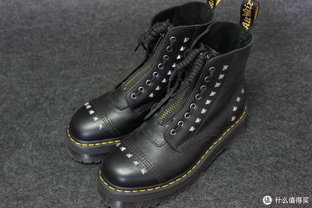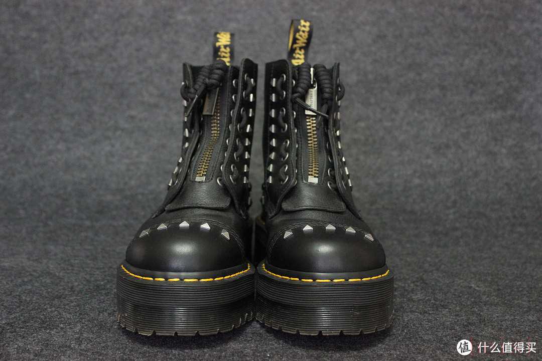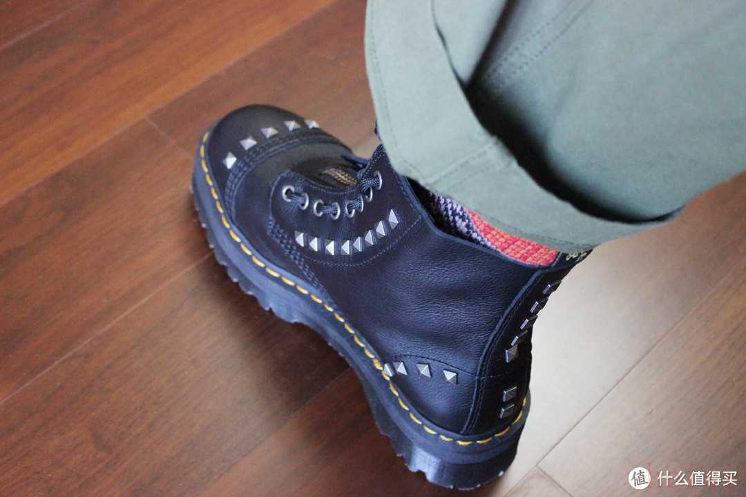 產(chǎn)品淘自ASOS,是品牌與電商平臺(tái)之間的聯(lián)名合作款,因此不像隨處可見(jiàn)的1460,至少在撞鞋率這塊上有所保障。產(chǎn)品最大的特點(diǎn)是遍布鞋身的鉚釘,搭配酷黑的皮革,在視覺(jué)效果上相當(dāng)punk,正式場(chǎng)合我真不敢隨便穿它出去,不過(guò)每當(dāng)夜晚降臨,它就會(huì)化作你唱K蹦迪,遛街耍瘋的利器。值得一提的是,厚底設(shè)計(jì)還能有效提升身高與氣場(chǎng)。
