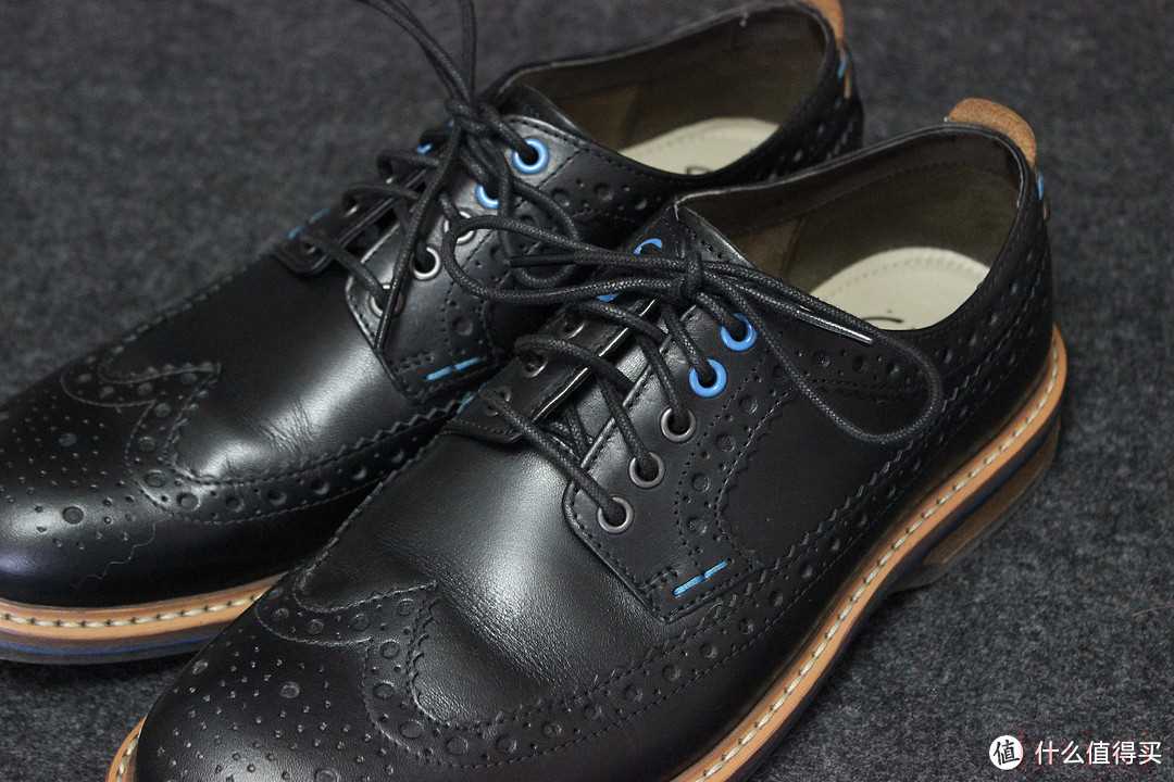在我印象中,Clarks的鞋子一直追求低調(diào)實(shí)用,可玩性于它而言或許是一項(xiàng)風(fēng)馬牛不相及的屬性,但在這雙鞋子身上,我卻收獲了許多饒有興致的小細(xì)節(jié)。比如最上方兩個(gè)鞋帶孔采用騷氣十足的淺藍(lán)色裝飾,與鞋子本身無(wú)處不在的淺藍(lán)色小細(xì)節(jié)遙相呼應(yīng),莊重之余又不失個(gè)性。