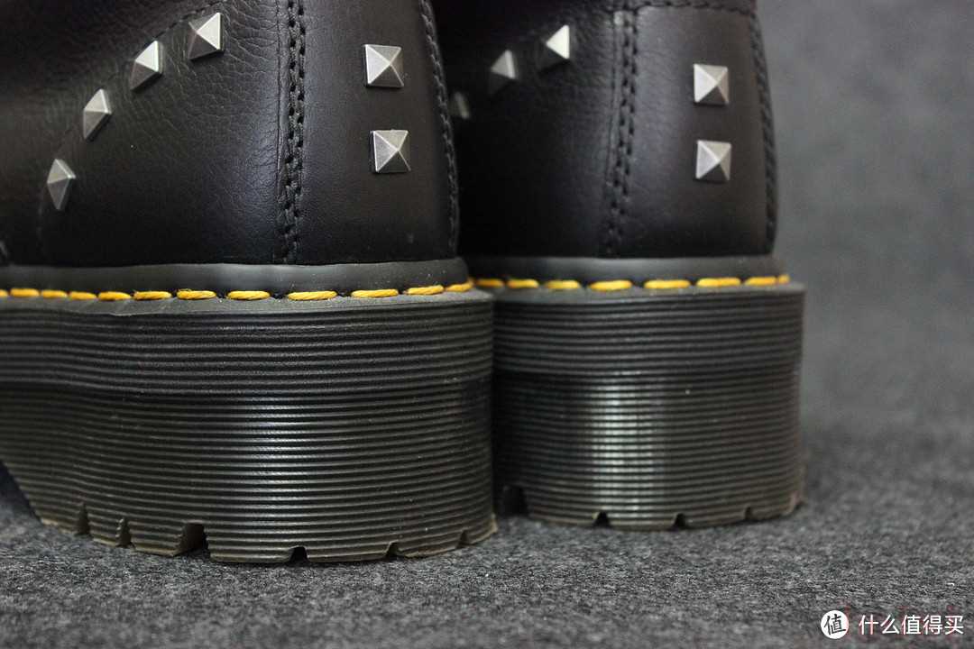 鞋邊采用固特異貼邊制作,鞋面與鞋底之間的連接除了傳統(tǒng)膠水手段以外,還使用了熱封和Z型貼合工藝,在一定程度上提升了牢固度。此外,鞋底是Dr.Martens的精華所在,畢竟當(dāng)初Klaus Mrtens醫(yī)生就是為了緩解病人的疼痛才研發(fā)了這種專(zhuān)門(mén)的AirWair氣墊鞋底。這是一種從上到下分為五層的結(jié)構(gòu),依次為鞋面、雙層上釉蜂巢層、防震軟墊層、防滲漏層、鞋底,其優(yōu)良的結(jié)構(gòu)特性能夠明顯減緩對(duì)于足底的震感,同時(shí)達(dá)到很好的防水防污功效。