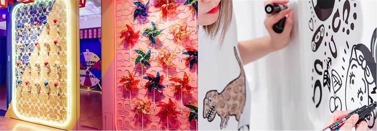 2019年3月,Coach(蔻馳)在日本東京打造了“Life Coach Tokyo”快閃店,主題是東京的傳統(tǒng)文化,并不提供商品售賣。一些房間里布置了象征日本傳統(tǒng)節(jié)日的霓虹燈,在一間空白的房間里,游客們還可以在白墻上自由創(chuàng)作涂鴉作品。