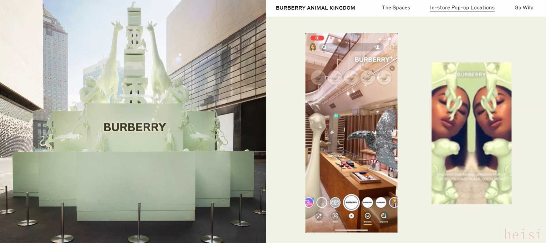 2020年9月至2021年1月,Burberry(博柏利)以“Animal Kingdom”(動物王國)為主題在全球各地開展快閃活動,共39個地區(qū),包括亞太的臺北、東京、首爾、悉尼、新加坡,北美的洛杉磯、休斯頓、芝加哥,以及倫敦、迪拜、伊斯坦布爾等地。