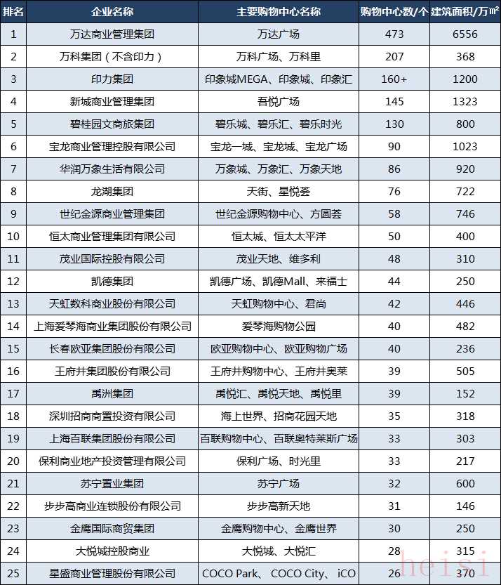 金鷹國(guó)際商貿(mào)集團(tuán)排名第23位,大悅城控股商業(yè)排名第24位,星盛商業(yè)管理股份有限公司排名第25位;