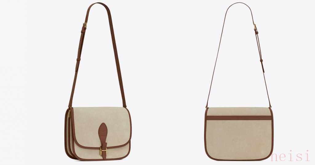小牛皮飾邊,以棉做襯里,設有拉鏈內袋,可調校皮革肩帶,長度為20英寸。