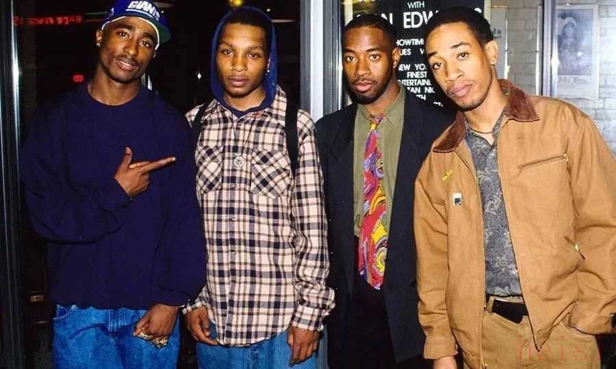 我們知道東海岸和西海岸的說唱群體向來不和,有著各自的風格堅持。但在選擇Carhartt上卻出奇的一致,從Nas、Tupac到Eazy-E。紐約的說唱歌手喜歡穿一件Carhartt夾克,燈芯絨Baggy褲腳塞進Timberland靴子里。洛杉磯則是深色Carhartt工裝襯衫??傊麄€90年代隨處可見黃色“C-Logo”。