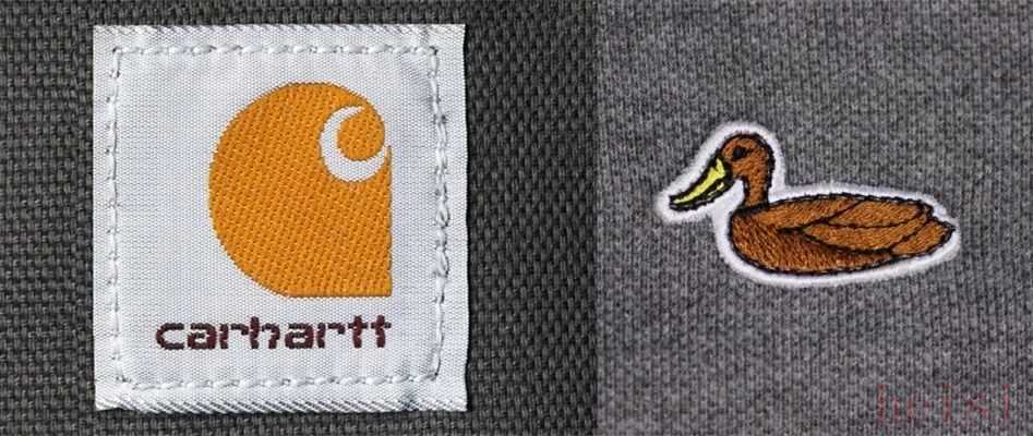 因為普通帆布是一針織成的,而Trademark是兩種纖維交織而成,所以質感更加硬挺厚實,又不失舒適性。荷蘭語“Doek”就是用來形容這種面料的,和Duck發(fā)音很像,Carhartt公司為了紀念這種面料便以”鴨子“作為品牌Logo之一。(大部分單品還是用的“C”Logo但有些衣服上見到萌萌的小鴨子Logo,千萬不要驚訝)