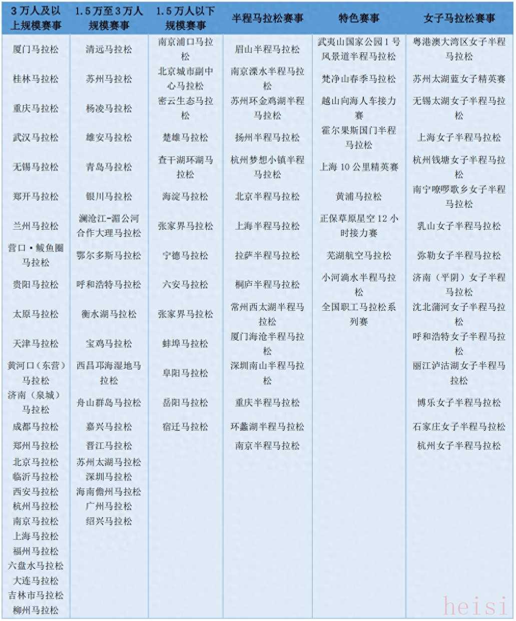 黨的二十屆三中全會(huì)審議通過的《中共中央關(guān)于進(jìn)一步全面深化改革 推進(jìn)中國(guó)式現(xiàn)代化的決定》指出,完善全民健身公共服務(wù)體系,改革完善競(jìng)技體育管理體制和運(yùn)行機(jī)制。2024年8月印發(fā)的《國(guó)務(wù)院關(guān)于促進(jìn)服務(wù)消費(fèi)高質(zhì)量發(fā)展的意見》提出,鼓勵(lì)舉辦各類體育賽事活動(dòng),創(chuàng)建具有自主知識(shí)產(chǎn)權(quán)的賽事品牌,申辦或引進(jìn)有影響力的國(guó)際頂級(jí)賽事,培育專業(yè)化運(yùn)營(yíng)團(tuán)隊(duì)。引導(dǎo)各地推出特色鮮明的群眾性體育賽事活動(dòng)。繼2023年以馬拉松為代表的我國(guó)路跑賽事快速回暖,2024年,無論從賽事數(shù)量,還是社會(huì)關(guān)注度方面,國(guó)內(nèi)路跑賽事依然呈現(xiàn)“熱辣滾燙”的態(tài)勢(shì)。各地各部門進(jìn)一步提升組織運(yùn)營(yíng)水平,打造城市特色品牌賽事,通過賽事搭臺(tái)、文旅商貿(mào)唱戲,將賽事流量轉(zhuǎn)化為發(fā)展增量,更好促進(jìn)地方經(jīng)濟(jì)社會(huì)高質(zhì)量發(fā)展。本報(bào)告依托前期研究成果,基于路跑賽事高質(zhì)量發(fā)展評(píng)估指標(biāo)體系,選取2024年100場(chǎng)重點(diǎn)賽事(90場(chǎng)常規(guī)賽事+10場(chǎng)特色賽事)進(jìn)行分析,較2023年的賽事分析樣本增加了40場(chǎng)。報(bào)告依托人民在線輿情監(jiān)測(cè)系統(tǒng)抓取相關(guān)數(shù)據(jù),同時(shí)結(jié)合人民網(wǎng)“領(lǐng)導(dǎo)留言板”平臺(tái)上群眾關(guān)于國(guó)內(nèi)馬拉松發(fā)展的相關(guān)建言,力圖反映2024年我國(guó)路跑賽事發(fā)展的新情況,提出我國(guó)路跑賽事未來發(fā)展趨勢(shì)與相關(guān)建議,倡導(dǎo)路跑賽事高質(zhì)量發(fā)展的創(chuàng)新路徑。2024年,全國(guó)馬拉松及路跑賽事數(shù)量較2023年有明顯增加。其中,中等規(guī)模賽事(3萬至1.5萬人),以及半程馬拉松賽事、女子馬拉松賽事數(shù)量呈現(xiàn)出更加明顯的上升趨勢(shì)。本報(bào)告共選取全程馬拉松賽事樣本60個(gè)。其中,選取參賽規(guī)模3萬人以上賽事26場(chǎng),此類賽事多為省會(huì)級(jí)別賽事,參賽人數(shù)多、覆蓋人群輻射全國(guó),是目前國(guó)內(nèi)馬拉松的核心賽事;選取參賽規(guī)模1.5萬人至3萬人賽事20場(chǎng),此類賽事受城市規(guī)模限制,參賽人數(shù)相對(duì)減少,但賽事特色明顯,受到舉辦地及周邊省市跑者歡迎;選取參賽規(guī)模1.5萬人以下賽事14場(chǎng),此類賽事比賽項(xiàng)目豐富,包含全程、半程、親子跑、歡樂跑、健康跑等,適合不同層級(jí)的跑步愛好者參與,是舉辦地開展全民健身運(yùn)動(dòng)的有效平臺(tái)。在全部賽事樣本中,共選取半程馬拉松賽事15場(chǎng)。此類賽事參賽人數(shù)由3000人至3萬人不等,有難度不高、對(duì)城市交通影響較小、適合在景區(qū)開展等特點(diǎn),也為跑步愛好者提供了更多參賽選擇。在全部賽事樣本中,共選取女子馬拉松賽事15場(chǎng)。作為專門為女性跑者設(shè)立的馬拉松比賽,賽事會(huì)提供專為女性打造的運(yùn)動(dòng)場(chǎng)景和運(yùn)動(dòng)裝備等。在全部賽事樣本中,共選取特色賽事10場(chǎng),包括10公里跑、接力跑、路跑融合賽事等非常規(guī)賽事。這些賽事各具特色,為跑者提供了新鮮、獨(dú)特的比賽體驗(yàn)。具體賽事樣本明細(xì)見下表。