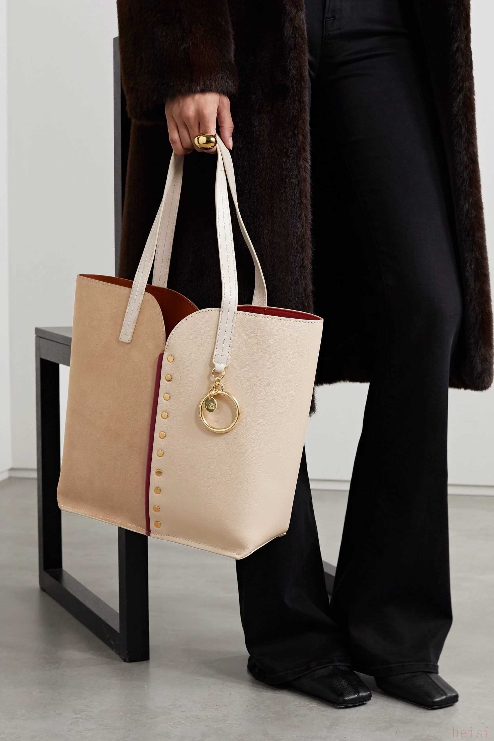 想要打破日常上班時(shí)的沉悶造型,不妨嘗試下See by Chloé的雙色托特包。由淡粉色麂皮和灰褐色皮革拼接而成,并以光滑的金色鉚釘裝飾,袋口呈現(xiàn)獨(dú)具特色的圓滑“V”形,內(nèi)部附有翻蓋口袋,方便存放小物。無論在通勤路上或是辦公室,都能讓你成為不一樣的“風(fēng)景”。