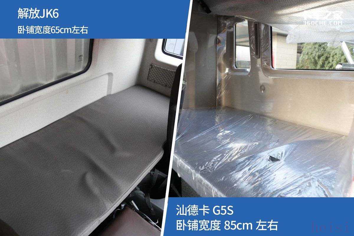 在臥鋪的配置上,解放JK6上下臥鋪近乎等款,其寬度達(dá)到650mm。汕德卡G5S的臥鋪寬度要略勝一籌,超過了850mm,上下臥鋪寬度相差也不多。