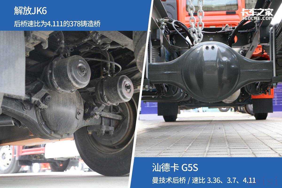 后橋部分,解放JK6所選擇的是后橋速比為4.111的378鑄造橋,這款汕德卡G5S裝配的是曼技術(shù)的油潤(rùn)滑自調(diào)臂單后橋,其型號(hào)為MCJ09BGY,速比可選3.36、3.7和4.11。