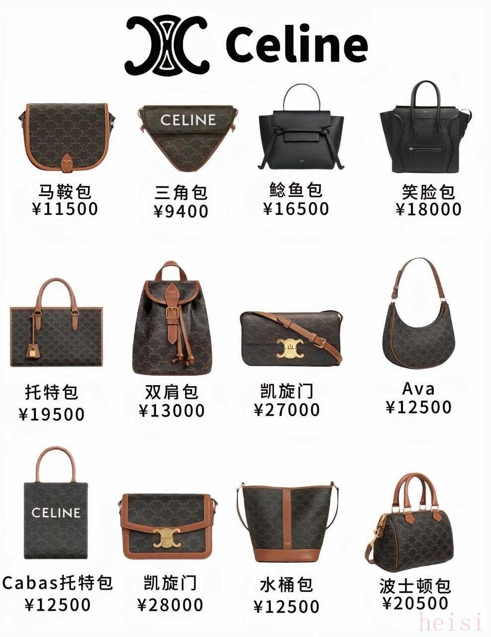 瑟琳Celine:Ava、tilly、凱旋門(mén),簡(jiǎn)約又高級(jí),價(jià)格幾千到兩萬(wàn)多。