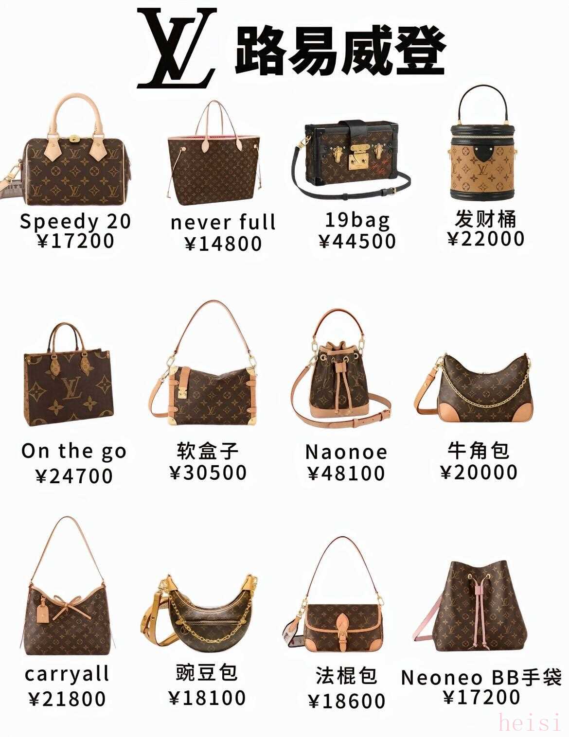 路易威登LV:speedy系列經(jīng)典耐用,on the go、carryall、never full都很能裝,價(jià)格幾千到兩萬(wàn)多,是很多人入門(mén)大牌的選擇。