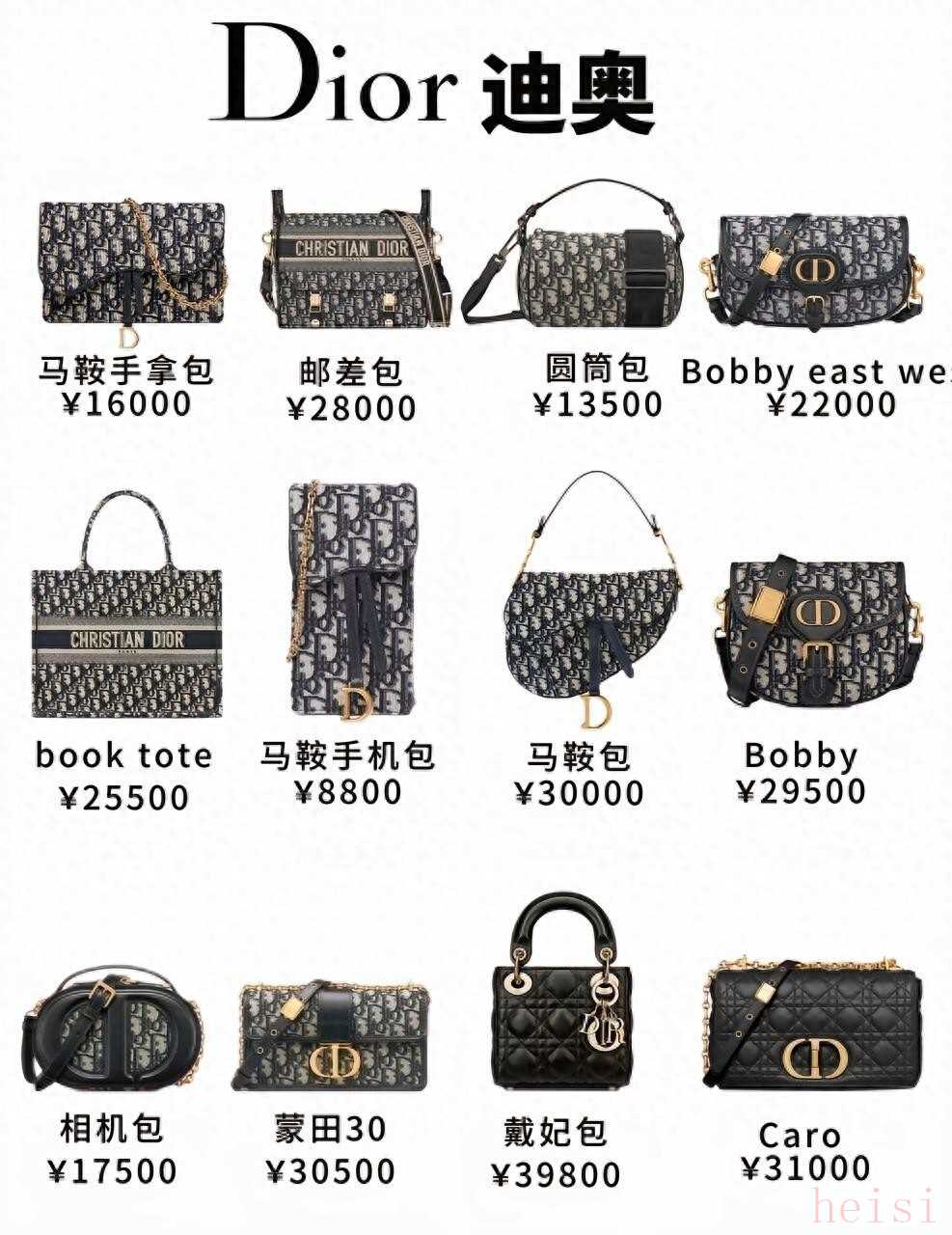 迪奧Dior:戴妃包優(yōu)雅,馬鞍包個(gè)性,booktote實(shí)用又好看,價(jià)格在幾千到三四萬(wàn)左右,魅力十足。