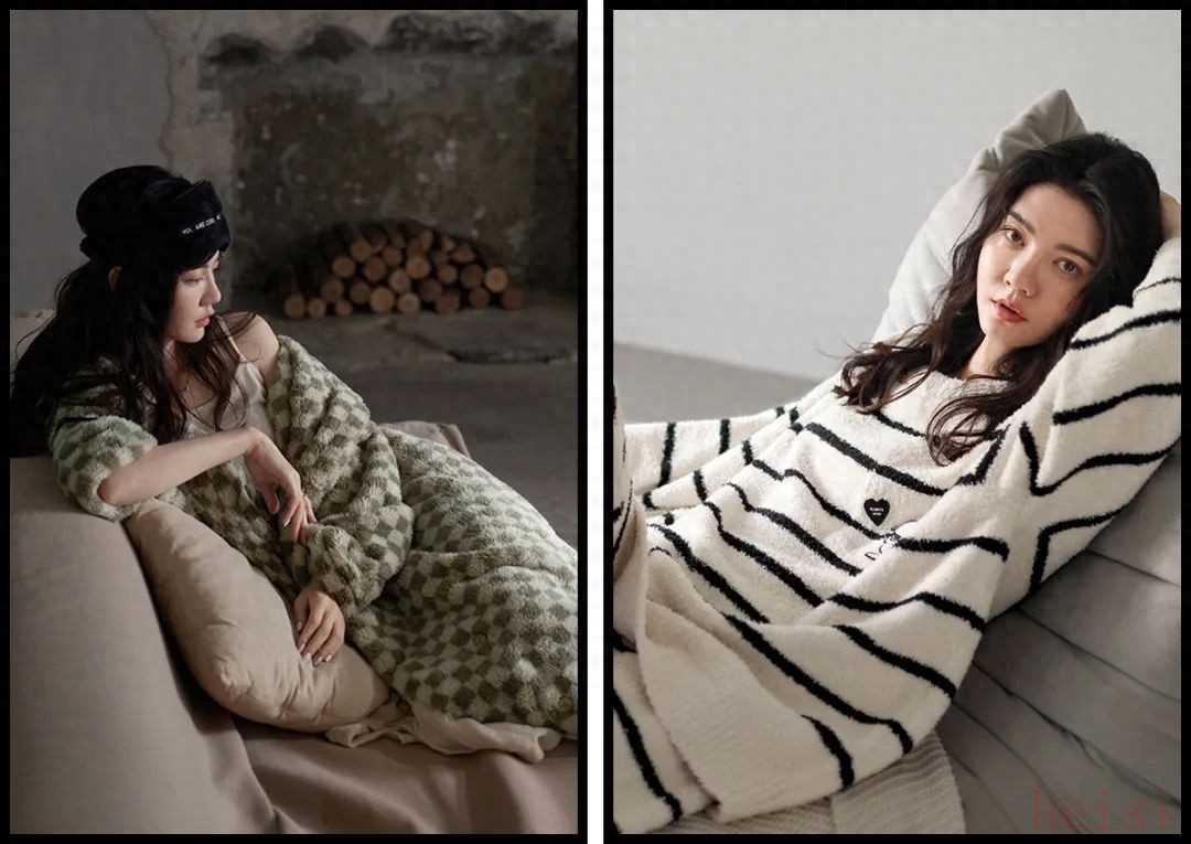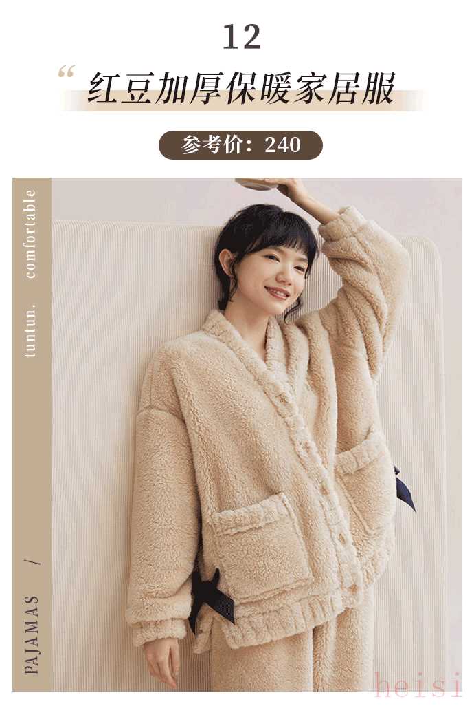 開(kāi)衫款的也是每年冬天的必備款了,尤其是對(duì)于不喜歡穿著睡衣睡覺(jué)的姐妹來(lái)說(shuō),里面再穿個(gè)薄款比較親膚的睡衣就可以完美解決這個(gè)問(wèn)題啦。