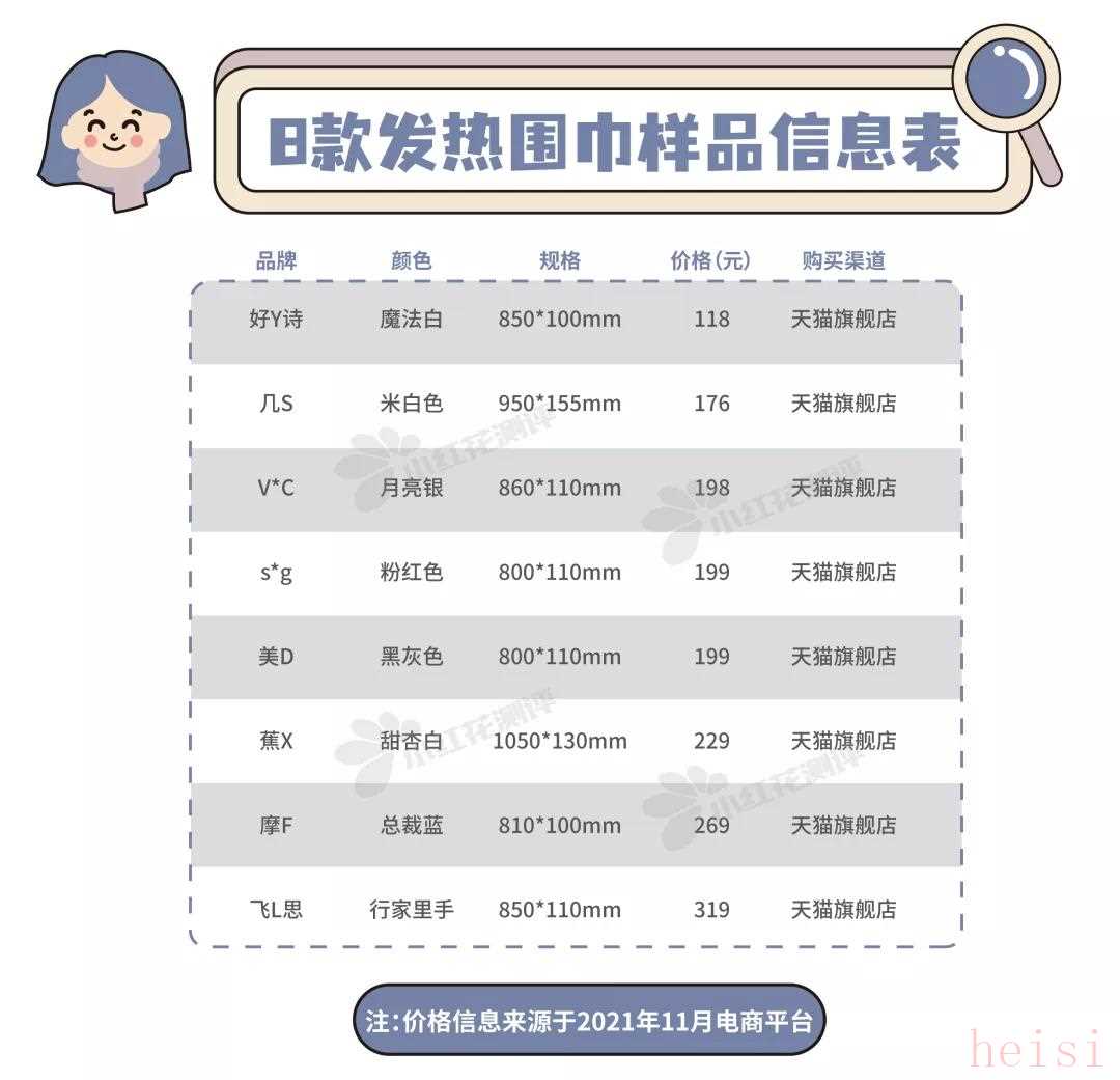 “小紅花測(cè)評(píng)”公眾號(hào)后臺(tái)回復(fù)關(guān)鍵詞“發(fā)熱圍巾”獲取完整品牌名測(cè)評(píng)指標(biāo)