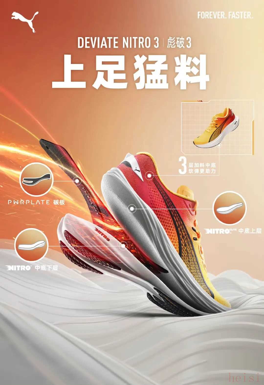 最新的發(fā)布的44毫米級恩厚底跑鞋,搭載Enerzy NXT中底緩震科技。