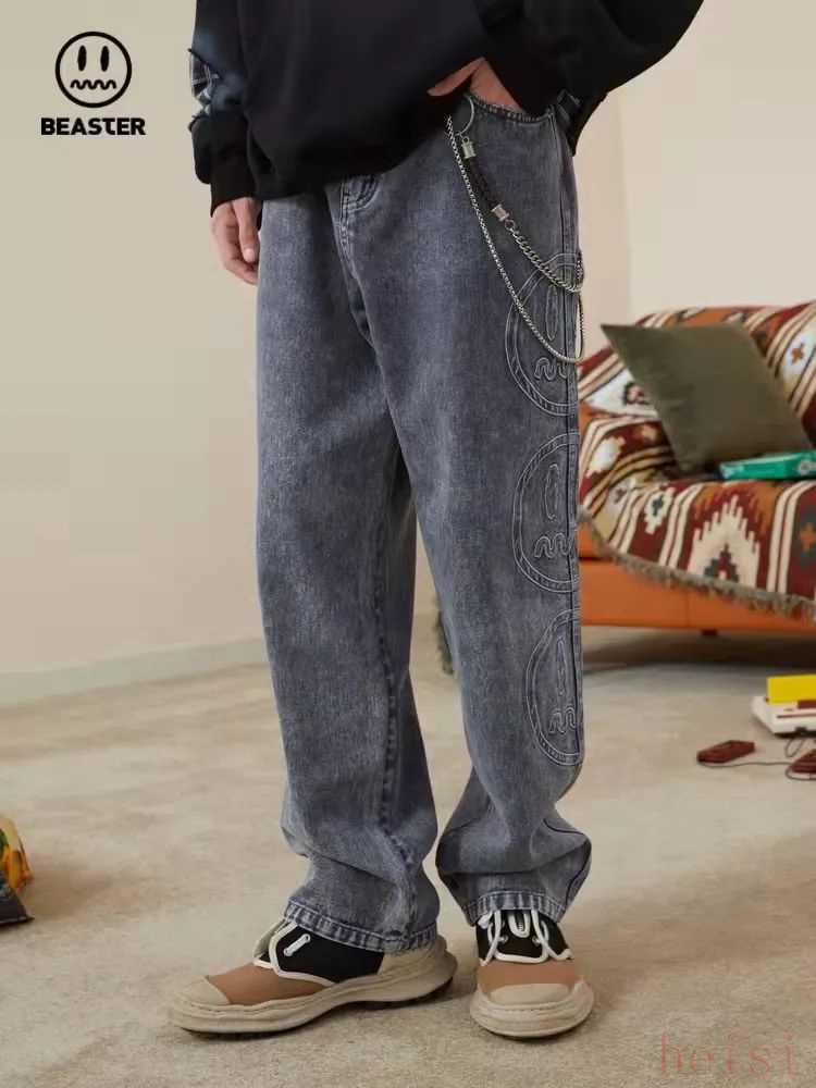 02Beaster 299.00作為新一代國貨品牌,Beaster在實力上雖不能與李寧、太平鳥等傳統(tǒng)服飾大牌相提并論,但憑借標志性的產(chǎn)品外觀和豐富的設(shè)計內(nèi)涵,也受到不少國內(nèi)潮服愛好者的追捧。波浪形嘴角的鬼臉,是Beaster為人熟知的標志性符號。它的牛仔褲沒有固定產(chǎn)品線,每個季度均有不同的主題,創(chuàng)作理念取自社會現(xiàn)象,給青年提供傳達正向態(tài)度的產(chǎn)品,比如2:30am膠囊系列反映快節(jié)奏生活下的焦慮、熬夜常態(tài)問題;The strangers系列鼓舞青年了解、表達自我。Beaster牛仔褲無性別之分,主打?qū)捤墒孢m,因此材質(zhì)以純棉為主,版型基本是寬松直筒。如果喜歡街頭潮流風格,那趣味搞怪的Beaster會很適合你,并且定價不高,基本300元左右就能入手。