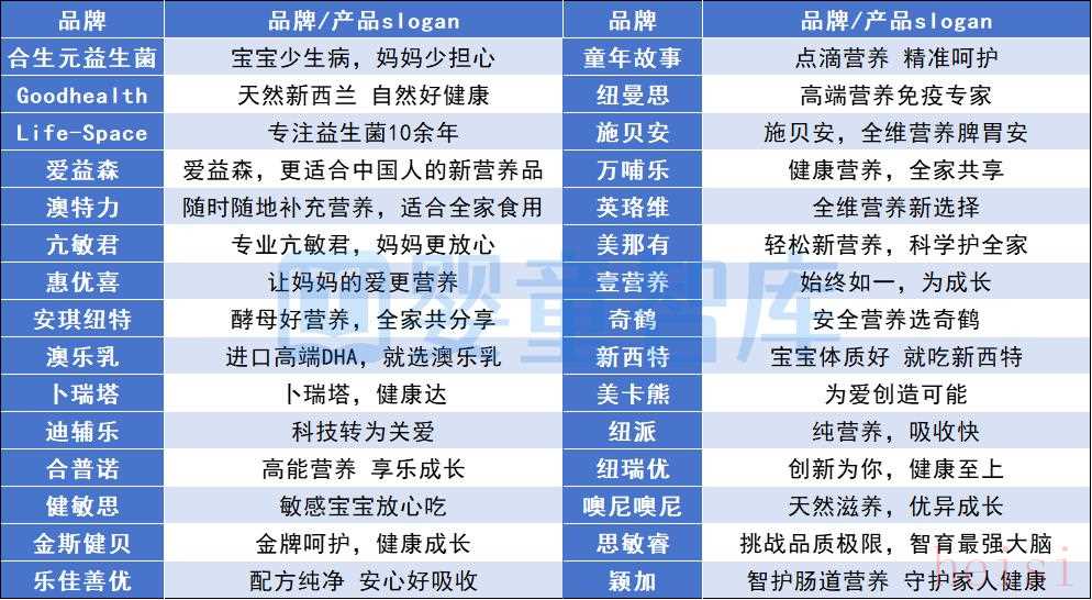 將“營養(yǎng)健康”作為母嬰營養(yǎng)品品牌slogan的核心,體現(xiàn)了品牌對消費者基本需求的深刻理解。在母嬰營養(yǎng)品市場中,消費者尤其關(guān)注產(chǎn)品的安全性、健康性。品牌通過強化“營養(yǎng)”、“健康”、“安全”等核心價值的輸出,直接傳達了產(chǎn)品賣點和品牌承諾,更利于品牌在消費者心中建立起安全且可靠的正面形象。例如萬哺樂的“健康營養(yǎng),全家共享”,惠優(yōu)喜的“讓媽媽的愛更營養(yǎng)”,卜瑞塔的“卜瑞塔,健康達”,金斯健貝的“金牌呵護,健康成長”。