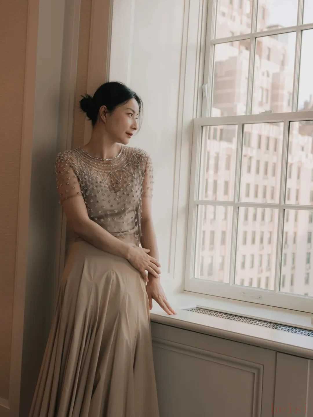 手腕上帶著的兩根頭繩是除了婚戒之外的唯一配飾,低調(diào)智慧和內(nèi)斂大氣在她身上體現(xiàn)的淋漓盡致。