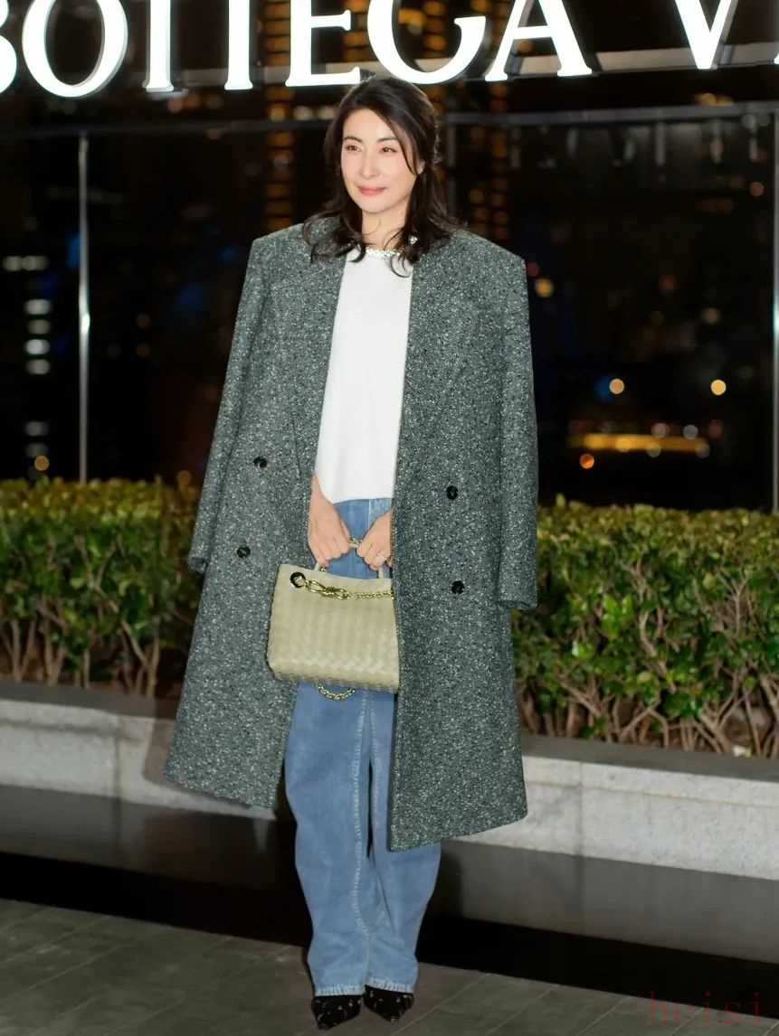 參加BV秀后派對,高挑身材身披大衣氣場十足。