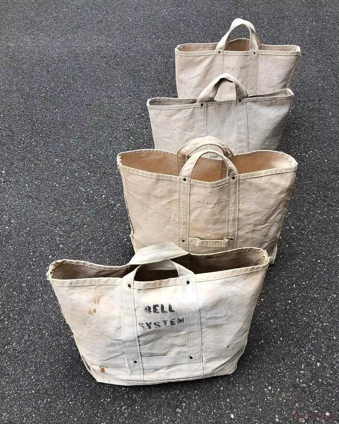 不難看出,現(xiàn)在很多帆布包款式也都復(fù)刻了 Bell System 的款式,跟真正的托特包相比起來,它的提把明顯較短,并不能肩挎。