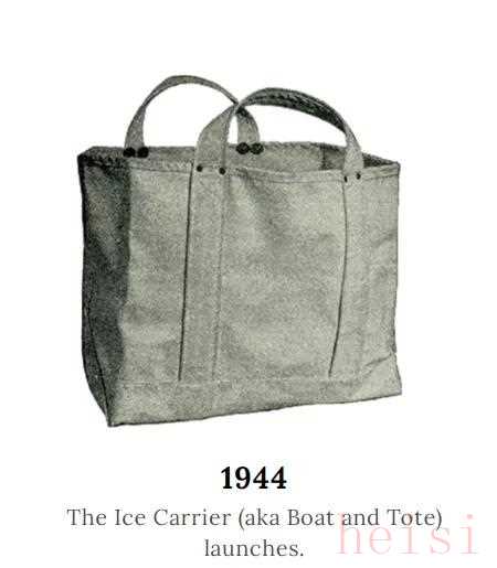 而托特包的前身來源于正是品牌在 40 年代制作的“冰袋”Ice Carrier(Bag),是為了解決把運(yùn)冰船和汽車上的冰塊運(yùn)到冰庫里而打造出的一款袋子,所以 L.L.Bean 的托特包全名也叫做 Boat and Tote。