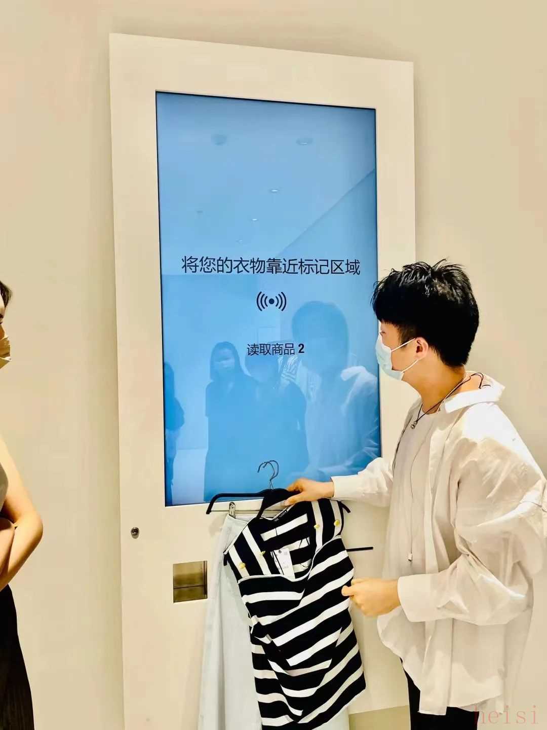 記者了解到,該門店在數(shù)字化零售方面做出了完善和創(chuàng)新。比如品牌首創(chuàng)的數(shù)字化試衣間,可以通過一塊智能感應(yīng)大屏自動(dòng)識(shí)別消費(fèi)者拿取衣物的數(shù)量,然后引導(dǎo)顧客到空閑的試衣間,避免了以前顧客們一間一間找空位的繁瑣和尷尬。