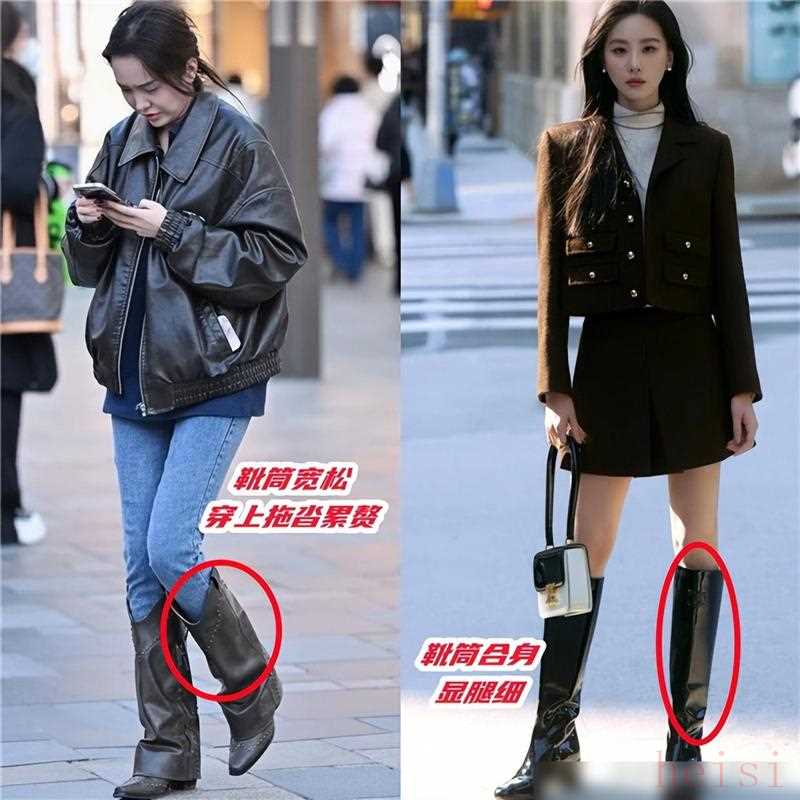既然上面這4款靴子都是智商稅,那我們要如何選靴子呢?首先,靴筒的合身度是關鍵,過寬的靴筒就會顯腳大顯腿粗。