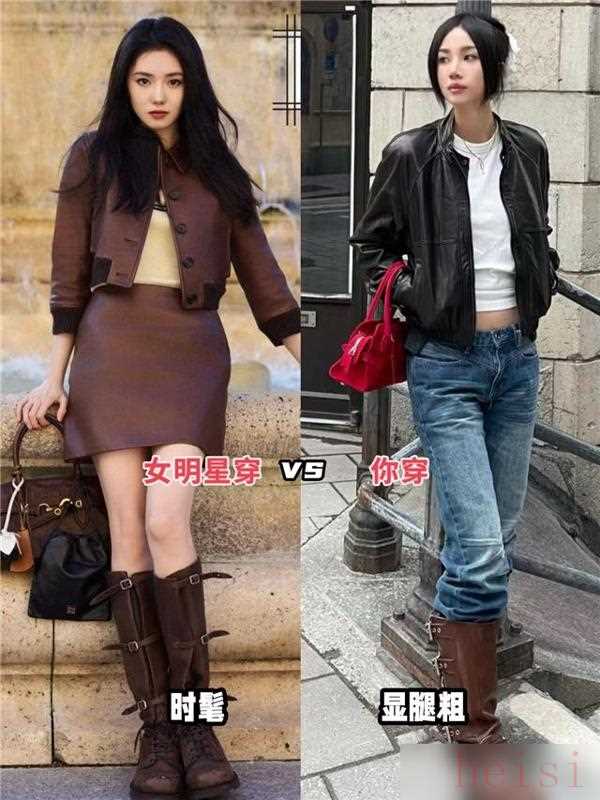 要知道,騎士靴又寬又長的靴筒設計,如果你的大腿和小腿有贅肉,穿上騎士靴反而會顯得更臃腫,壓低身高,讓腿圍更粗。