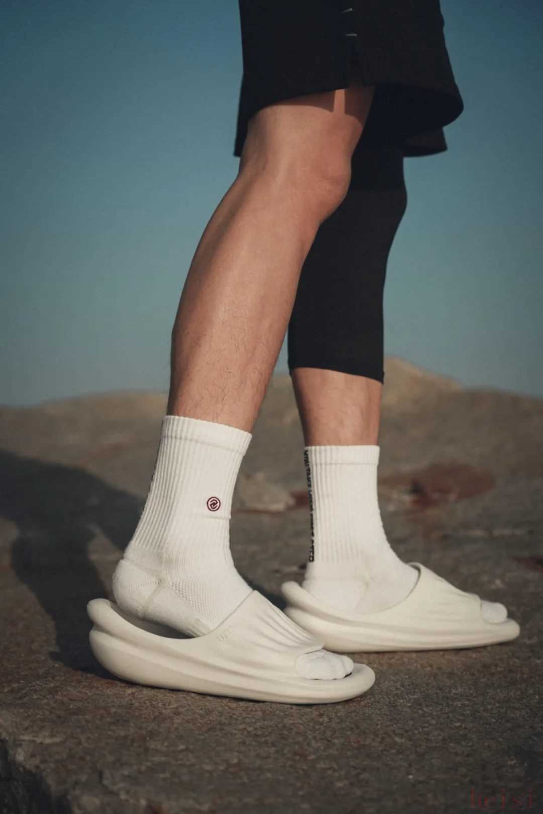 然而伴隨著普及性的增強(qiáng),開(kāi)始變得逐漸「爛大街」起來(lái),越來(lái)越多的潮流愛(ài)好者將目光聚焦到了Yeezy Slide上面,加以個(gè)人審美的襪子搭配,就能呈現(xiàn)出極佳的街頭感穿搭。