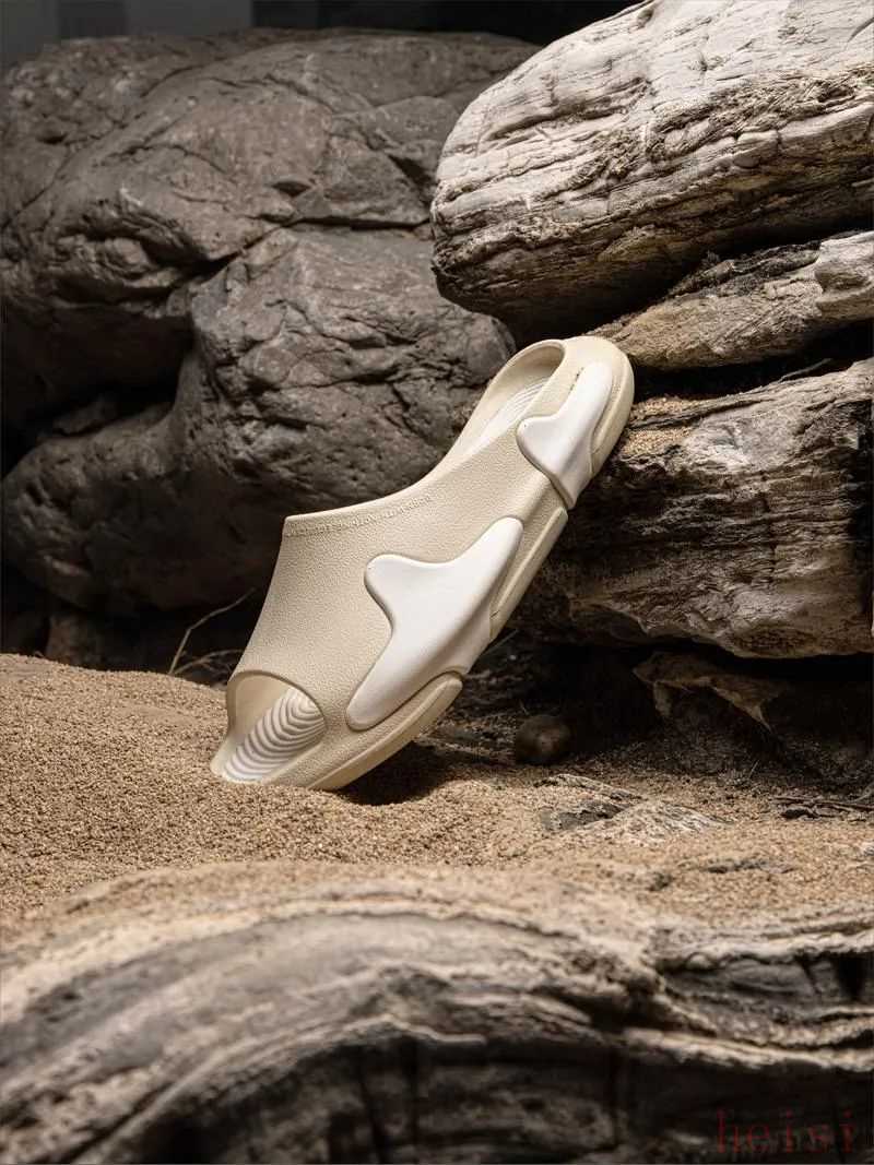 整體鞋身采用獨(dú)特的泡沫化合物制成,將輕質(zhì)EVA與混合在一起,雖然看似塑膠殼一般的質(zhì)感,卻有著十分軟彈的腳感體驗(yàn),寬大的鞋口設(shè)計(jì)避免了很多拖鞋都存在的磨腳問(wèn)題,前端的包裹更是令出街時(shí)候不必?fù)?dān)心腳趾受傷。