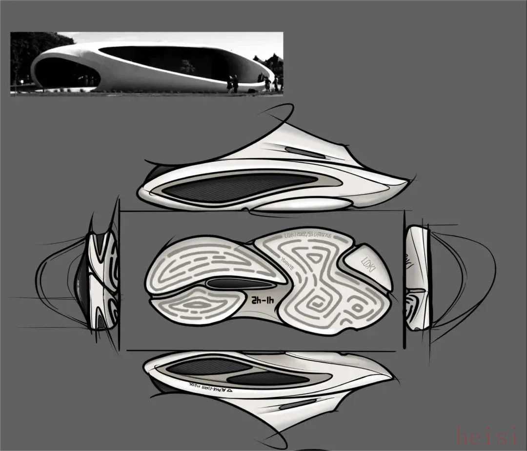 最大的特色就是鞋面線條變化不是以平滑曲線呈現(xiàn),而是類似等高線的設(shè)計(jì),一層一層堆積而成。