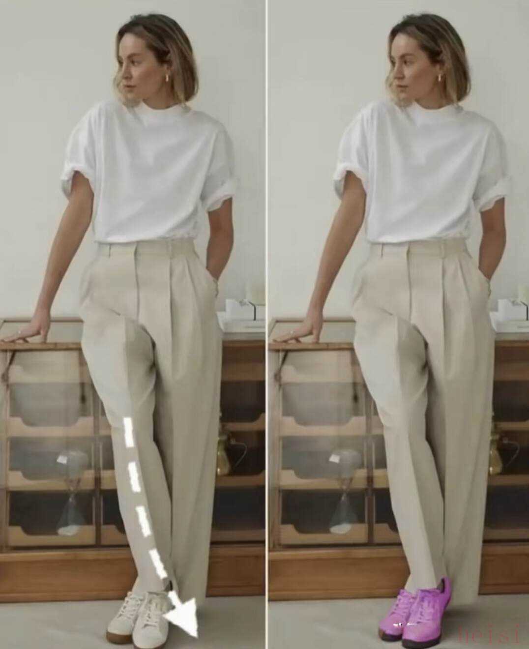 小白鞋雖然能與各種風(fēng)格適配,堪比時(shí)尚界的“萬(wàn)金油”,但想要將其穿好看,卻有很高的入門(mén)檻。多數(shù)小白鞋的鞋型設(shè)計(jì)較為簡(jiǎn)約,沒(méi)有過(guò)多修飾線條,如果腿型不夠筆直修長(zhǎng),穿著后反而會(huì)暴露腿部缺點(diǎn)。