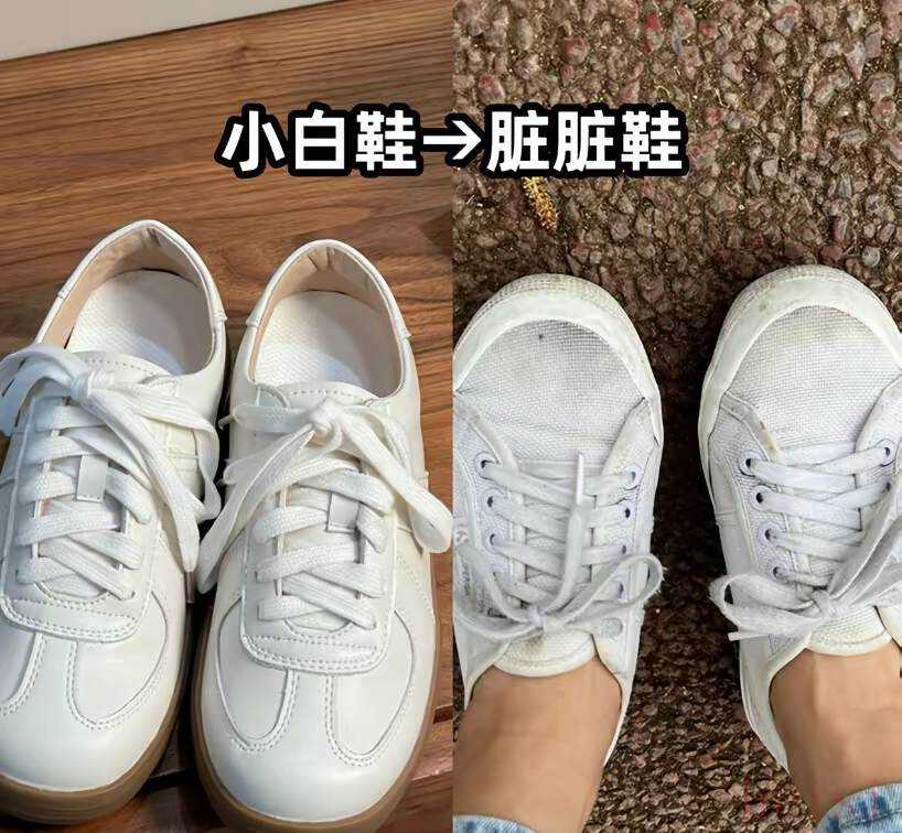不過(guò),小白鞋最大的“硬傷”還得是它的清潔難題。白色鞋面一旦沾上污漬、泥點(diǎn),就會(huì)格外明顯,無(wú)論是水漬、灰塵還是油漬,都讓鞋子瞬間失去精致感。