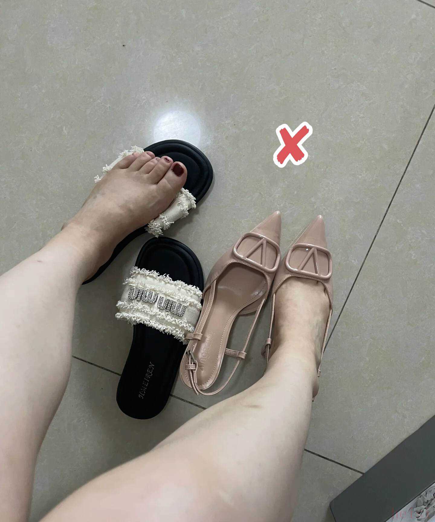窄頭鞋會(huì)擠壓腳部空間,讓原本寬厚的腳更加局促,還會(huì)顯得腳部臃腫;而過(guò)于繁復(fù)的設(shè)計(jì),如過(guò)多的裝飾、密集的花紋等,會(huì)在視覺(jué)上加重腳部的厚重感。