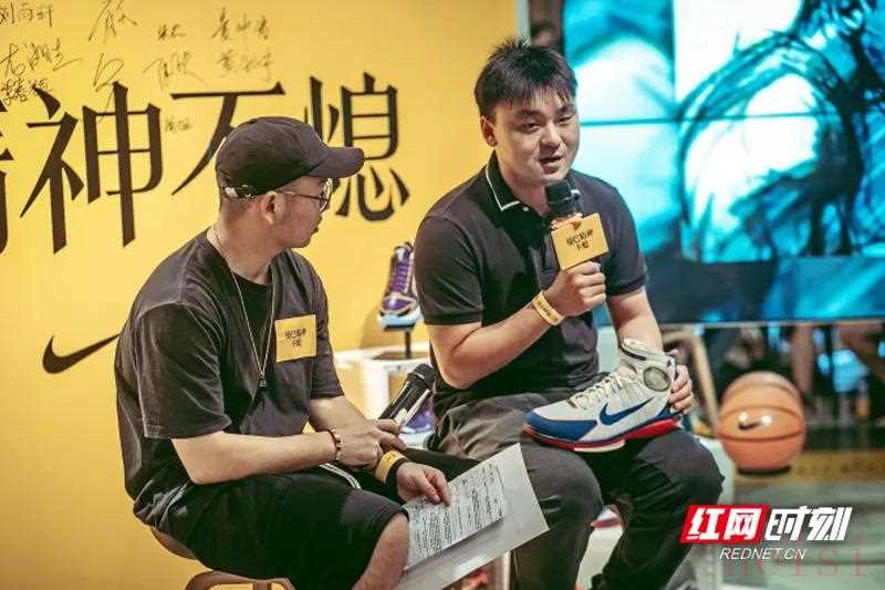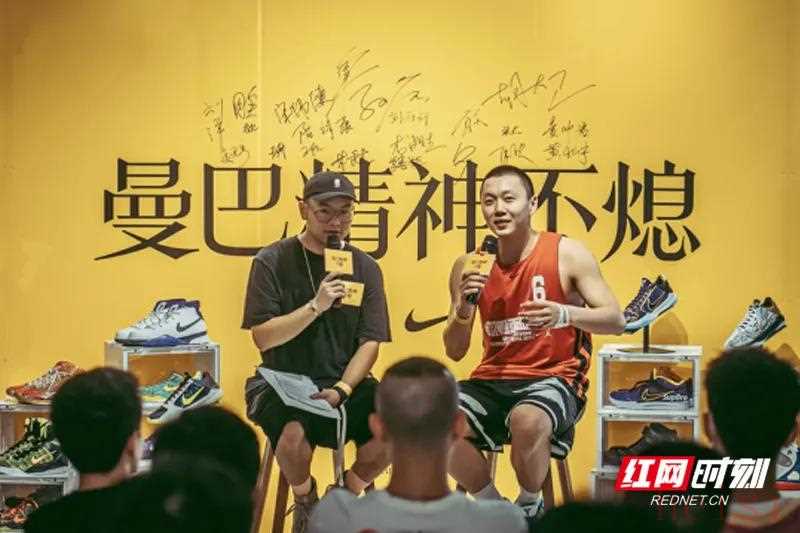 楊孝儒(左)與徐亮(右)在科比紀(jì)念活動現(xiàn)場分享科比球鞋收藏故事。