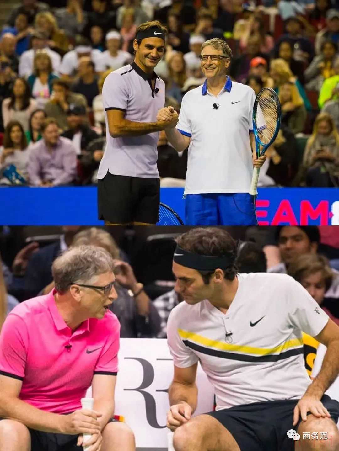 喜歡打網(wǎng)球的蓋茨常常穿著NIKE的網(wǎng)球衫,作為費(fèi)德勒頭號粉絲的他也常常去費(fèi)德勒的比賽現(xiàn)場助陣。