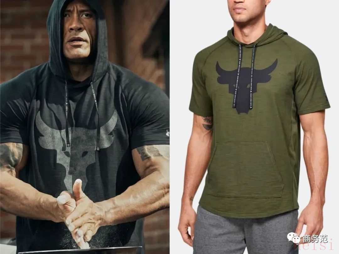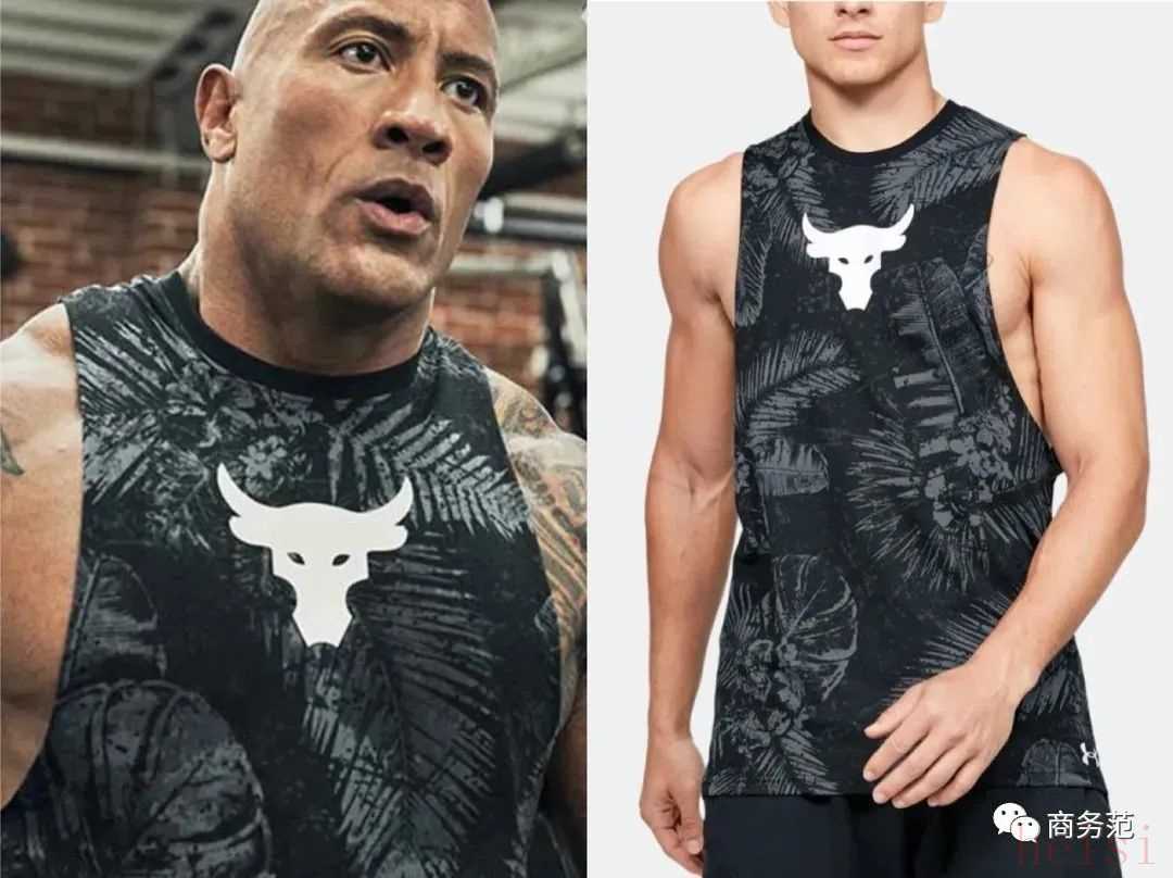作為安德瑪?shù)拇匀?,巨石?qiáng)森還與安德瑪攜手推出過一款“UA Project Rock”系列裝備,大大的公牛頭標(biāo)志十分搶眼??梢钥吹骄奘瘡?qiáng)森在訓(xùn)練時幾乎全部都穿著這個合作系列服飾,在電影《速度與激情7》中也穿了下面這款安德瑪緊身衣。