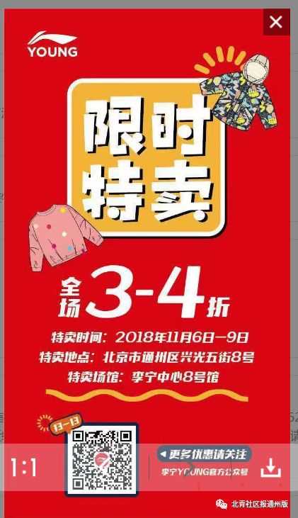 今天,北青社區(qū)報(微信號:tongzhoushequbao)從李寧中心獲悉,李寧體育通州總部將舉辦特賣會,就在咱們家門口!