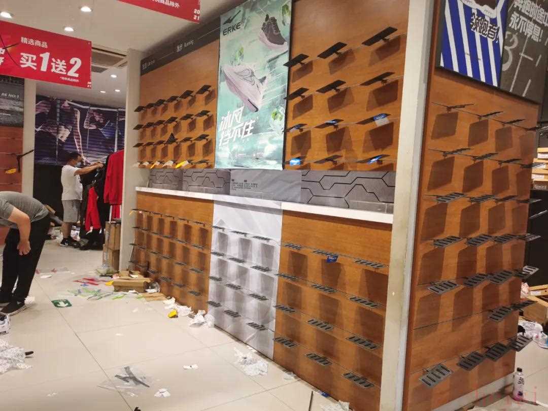 7月26日上午,北京鴻星爾克百榮世貿(mào)商城店里人流如潮。門店入口,碩大的“夏季清倉”“全場二折起”“買一送一”的促銷海報仍貼在玻璃門上,但店內(nèi)四面墻的貨架上鞋子寥寥無幾。