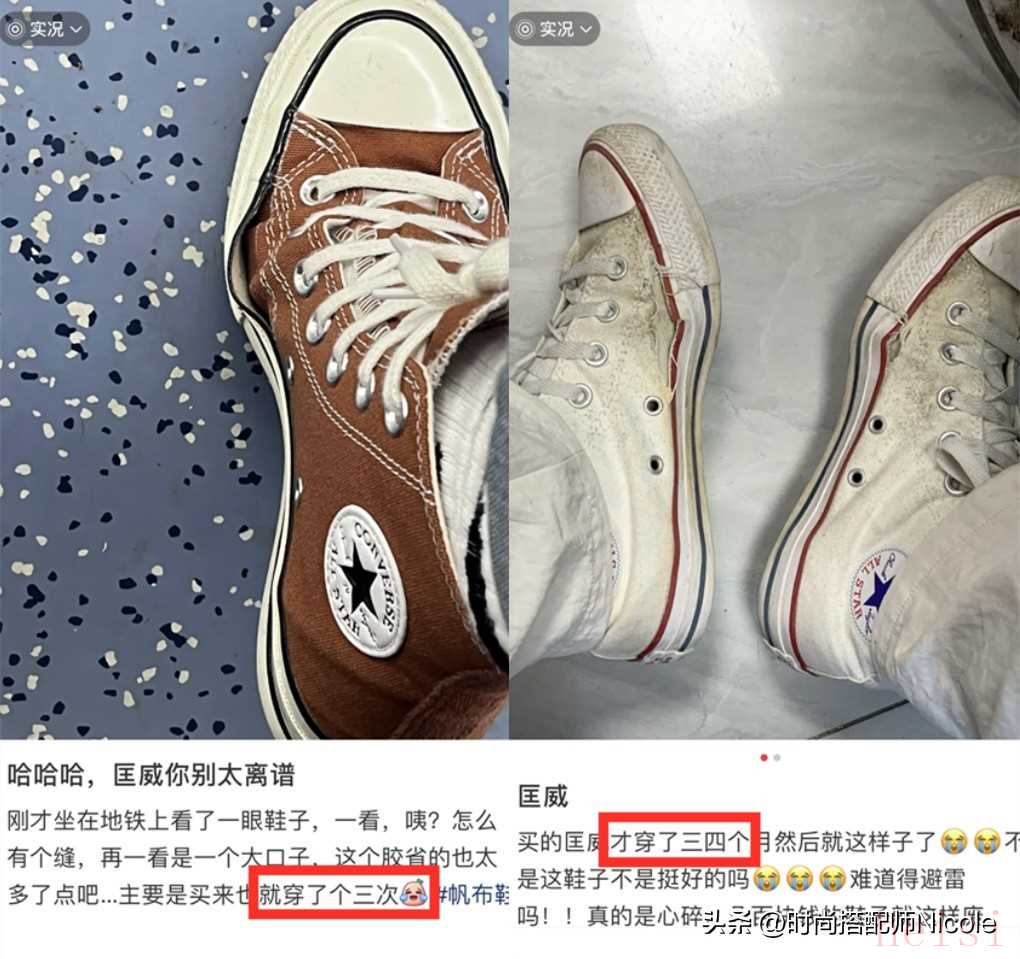加之匡威很不耐穿,大幾百的鞋子穿不了多久鞋幫就很容易斷裂、脫膠、發(fā)黃,所以很多打工族和學(xué)生黨認(rèn)為“假貨性價比更高”,轉(zhuǎn)而主動購買高仿鞋。▼▼
