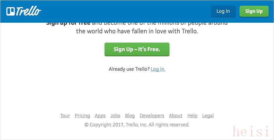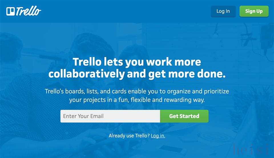 例如辦公協(xié)作應(yīng)用Trelllo的官網(wǎng)頂部沒有導(dǎo)航,只保留了登陸和注冊入口。頁面的信息組織