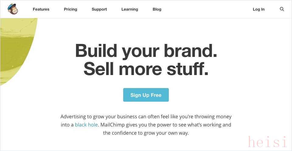 MailChimp用與首屏標題同樣風(fēng)格的文案,配合界面圖來強化USP:
