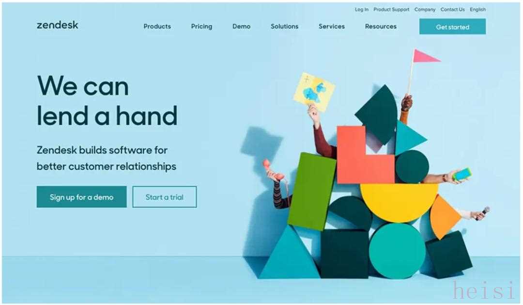 Zendesk用形象的概念圖來輔助傳達產(chǎn)品的價值主張——We can lend a hand。