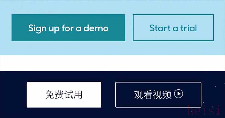 原則上來說CTA按鈕應(yīng)該只有一個,但近年來越來越多的企業(yè)產(chǎn)品官網(wǎng)會在主要CTA按鈕旁邊放一個次級CTA按鈕,為訪客提供第二選擇,這樣做可以讓訪客在不想點擊主按鈕的情況下退而求其次。對于企業(yè)產(chǎn)品的用戶來說,在注冊之前提供產(chǎn)品試用或視頻演示能大大增進對產(chǎn)品的了解。