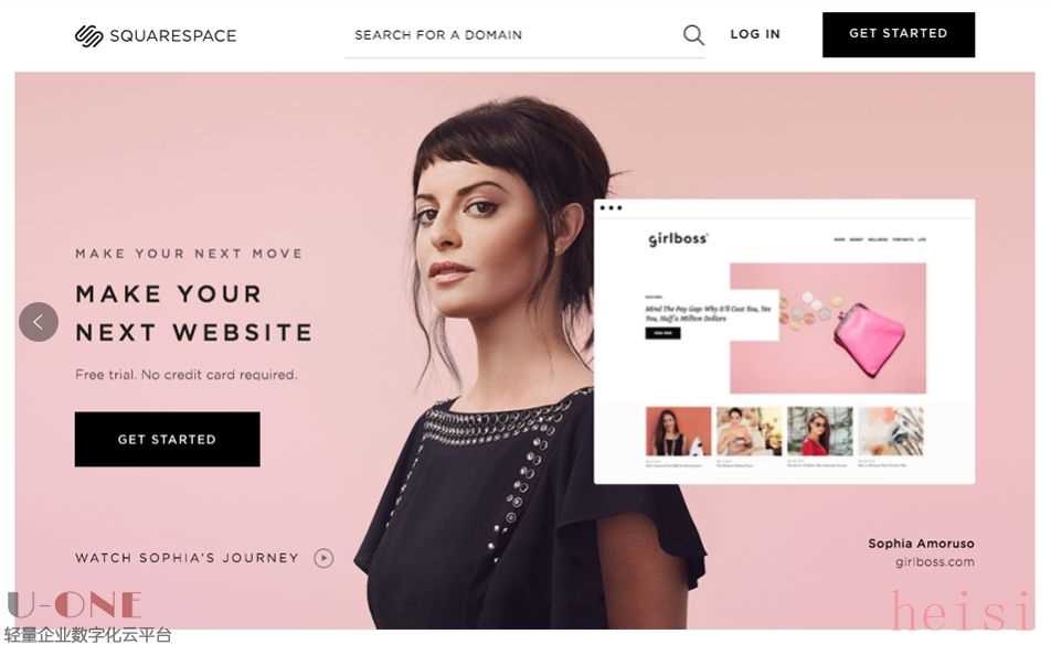 自助建站應(yīng)用Squarespace用高清的客戶肖像圖配合產(chǎn)品界面,來表現(xiàn)他們的應(yīng)用可以為不同人群定制專屬網(wǎng)站的理念: