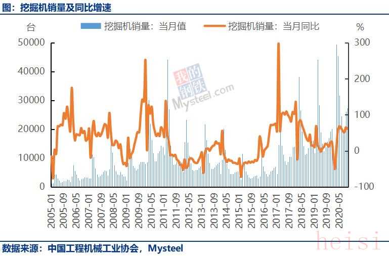 根據(jù)中國工程機(jī)械工業(yè)協(xié)會(huì)行業(yè)統(tǒng)計(jì)數(shù)據(jù),2020年1-10月納入統(tǒng)計(jì)的25家主機(jī)制造企業(yè),共計(jì)銷售各類挖掘機(jī)263839臺(tái),同比增長34.5%。
