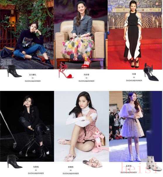 近兩年,古力娜扎、劉亦菲、劉濤、馬思純、關(guān)曉彤、孟美岐等超百位明星都穿著DUOHUA & VIVINER(鐸華薇薇兒)鞋履登上了各類媒體或出席各類時尚活動: