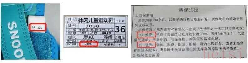 兒童鞋的標(biāo)簽標(biāo)識(shí)是指標(biāo)注在鞋上、內(nèi)包裝(含吊牌)的基本信息。本次標(biāo)簽標(biāo)識(shí)測(cè)試主要問題為:鞋號(hào)未標(biāo)注腳長示值或腳寬示值;未標(biāo)注企業(yè)名稱及聯(lián)系方式;三包規(guī)定未標(biāo)注包修條款;生產(chǎn)日期未按標(biāo)準(zhǔn)要求標(biāo)注年月日等。